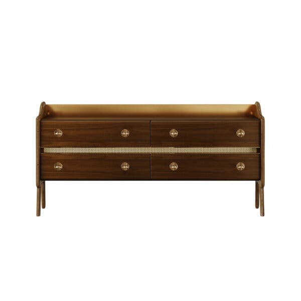 Bufetul Lester este o piesă ce îmbină armonios influențele retro cu o viziune modernă. Cele patru sertare prezintă un design simplu, evidențiat de mânerele strălucitoare, în timp ce structura principală readuce stilul mid-century prin liniile sale atrăgătoare.