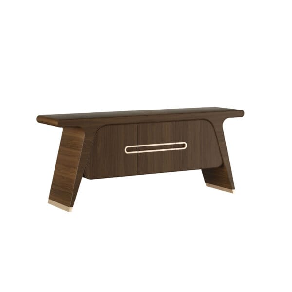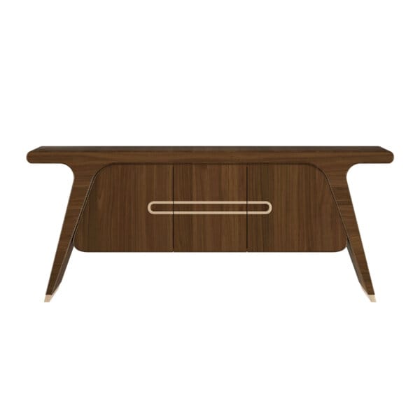 Bufetul Stuart, realizat din lemn de nuc cu finisaj mat și accente din alamă, oferă spațiu generos pentru depozitare și organizare. Ideal pentru living sau zona de dining, poate fi utilizat pentru păstrarea obiectelor și servirea elegantă a băuturilor.