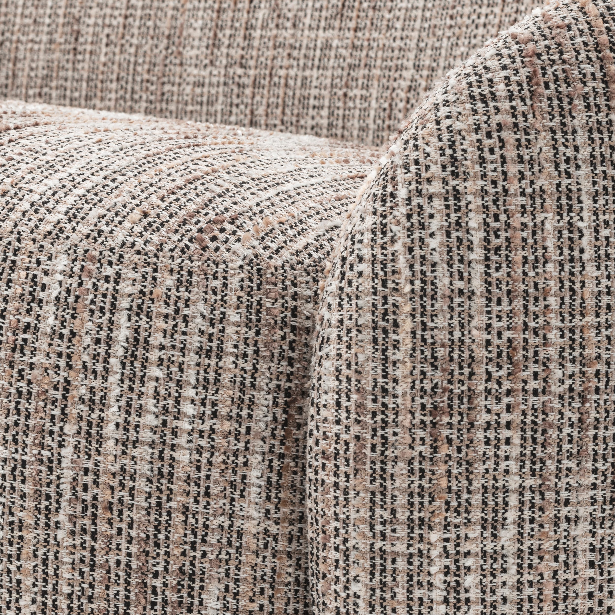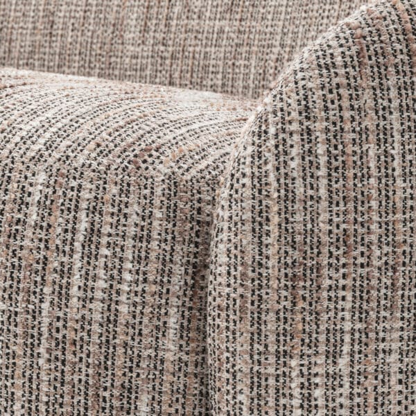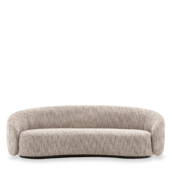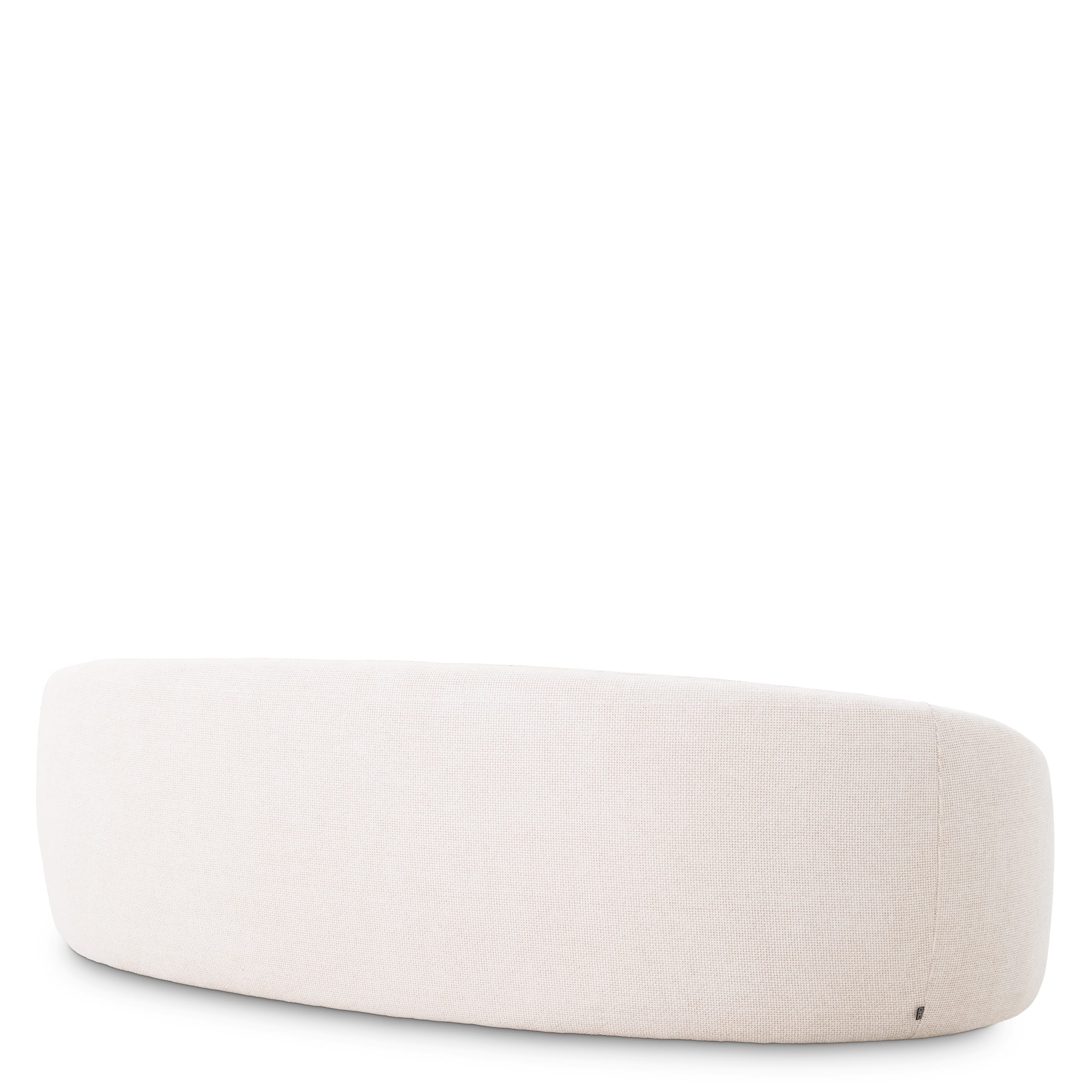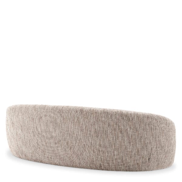 Tapițată într-un material textil fin, această canapea cu formă organică impresionează prin estetica sa și un design care combină frumusețea cu relaxarea. Aspectul său ușor suspendat, cu capete rotunjite, îi conferă o prezență elegantă, plină de rafinament.