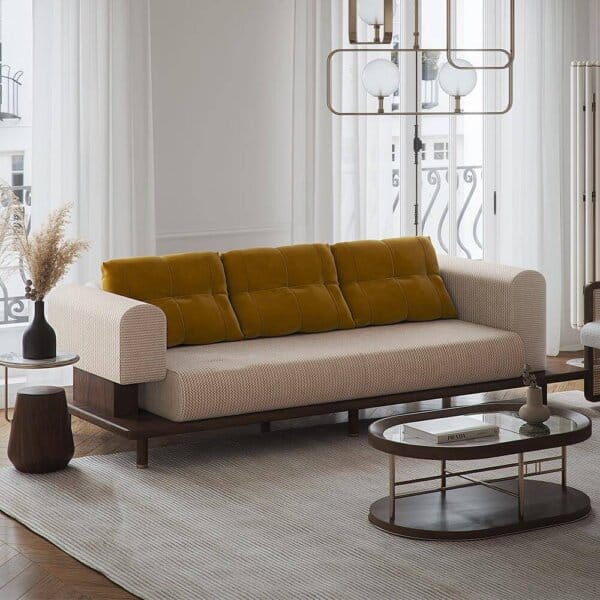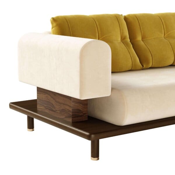 Canapeaua Colbert îmbină armonios simplitatea cu un design plin de personalitate, conturând o siluetă distinctivă. Jocul dintre culorile tapițeriei și eleganța lemnului masiv conferă acestei piese un stil aparte, contribuind la crearea unei atmosfere memorabile și sofisticate în orice spațiu.
