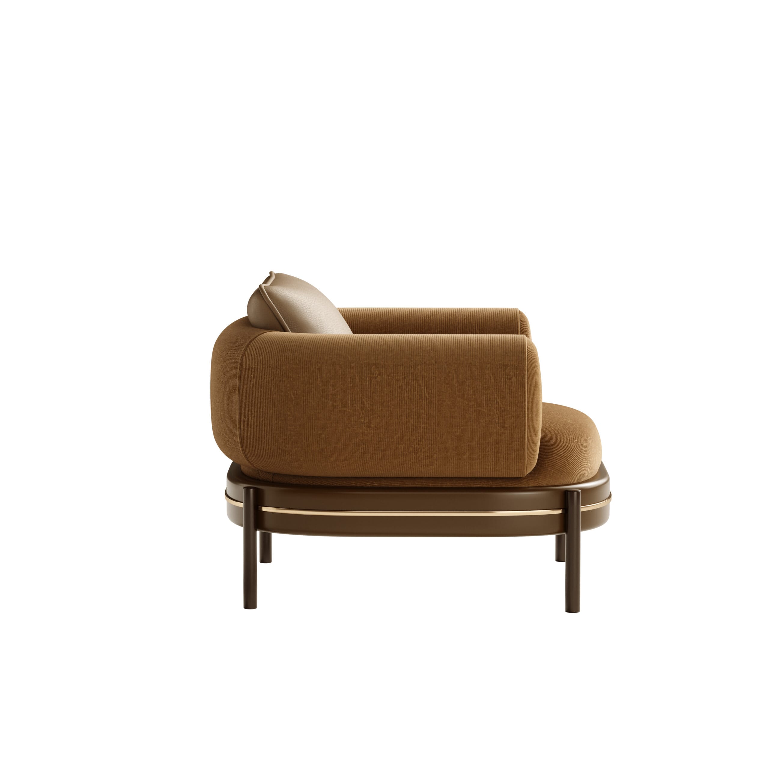 Îmbinând formele organice cu materiale premium, fotoliul Monza se remarcă drept o piesă statement versatilă, ideală pentru interioare contemporane care caută căldură, confort și un design atemporal. Șezutul rotunjit se sprijină pe o structură solidă din lemn, cu detalii delicate din alamă. Deasupra șezutului, brațele laterale și spătarul se unesc într-o singură formă continuă, oferind suport și o estetică modernă, rafinată.