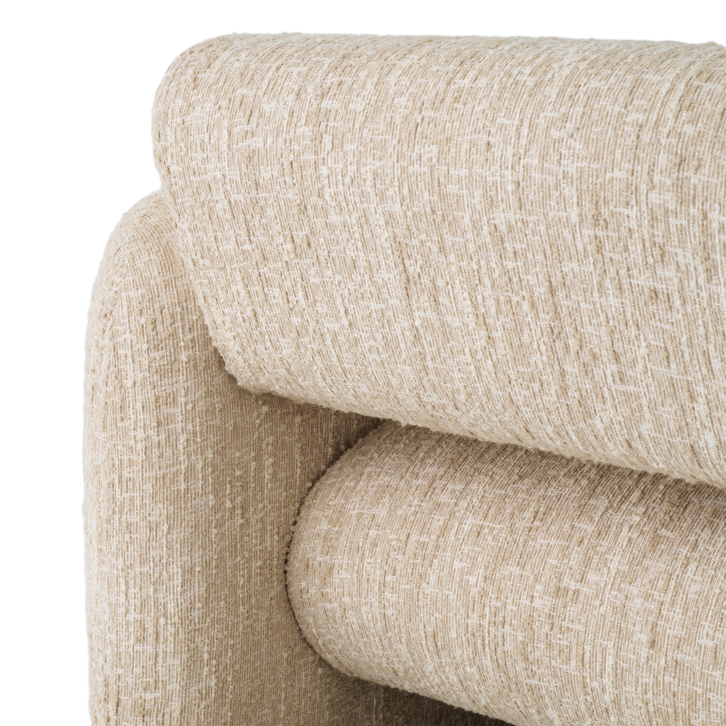 Țesătura sa bouclé, cu textură bogată, alături de liniile fluide, creează un echilibru armonios între confort și stil, aducând un plus de rafinament și eleganță decorului tău.
