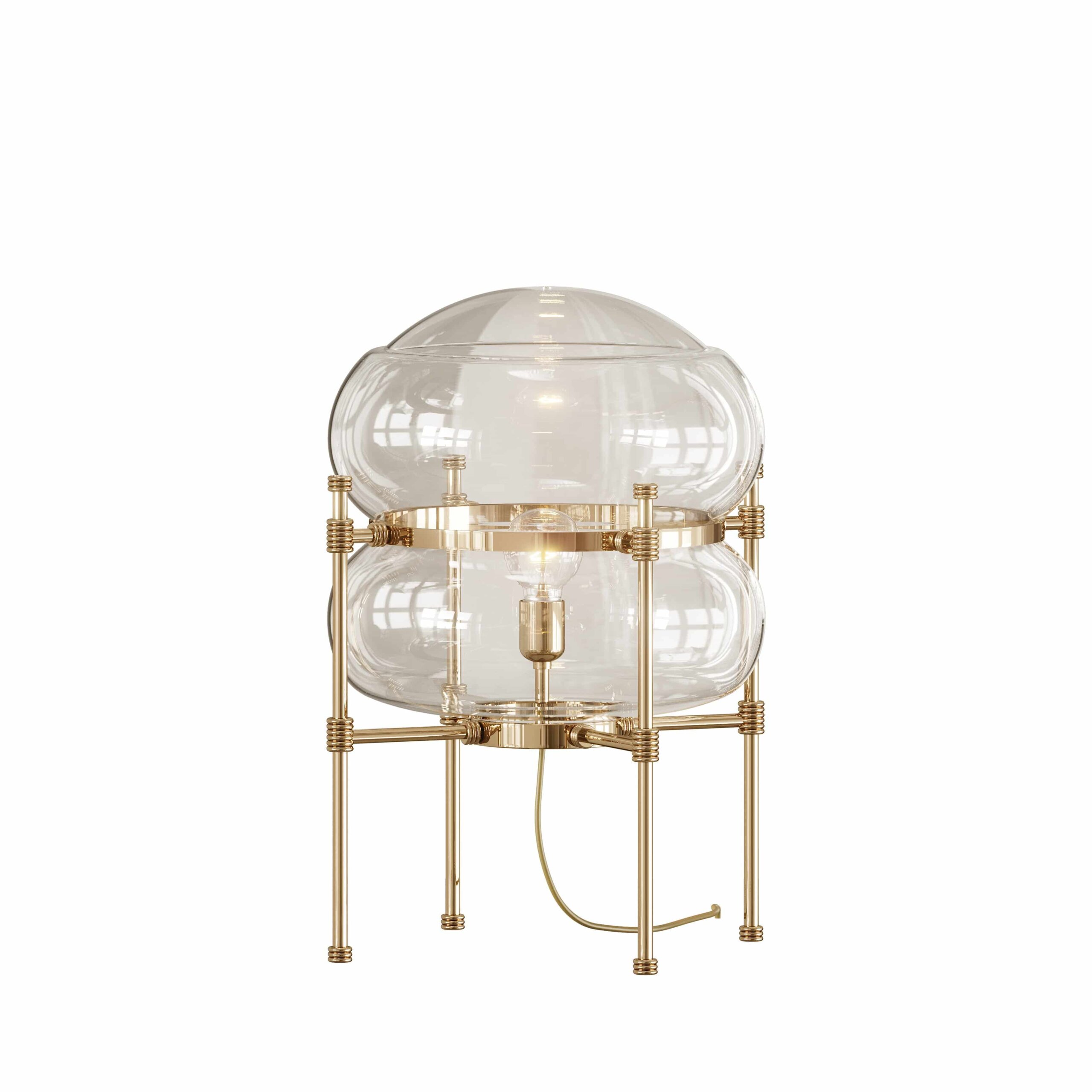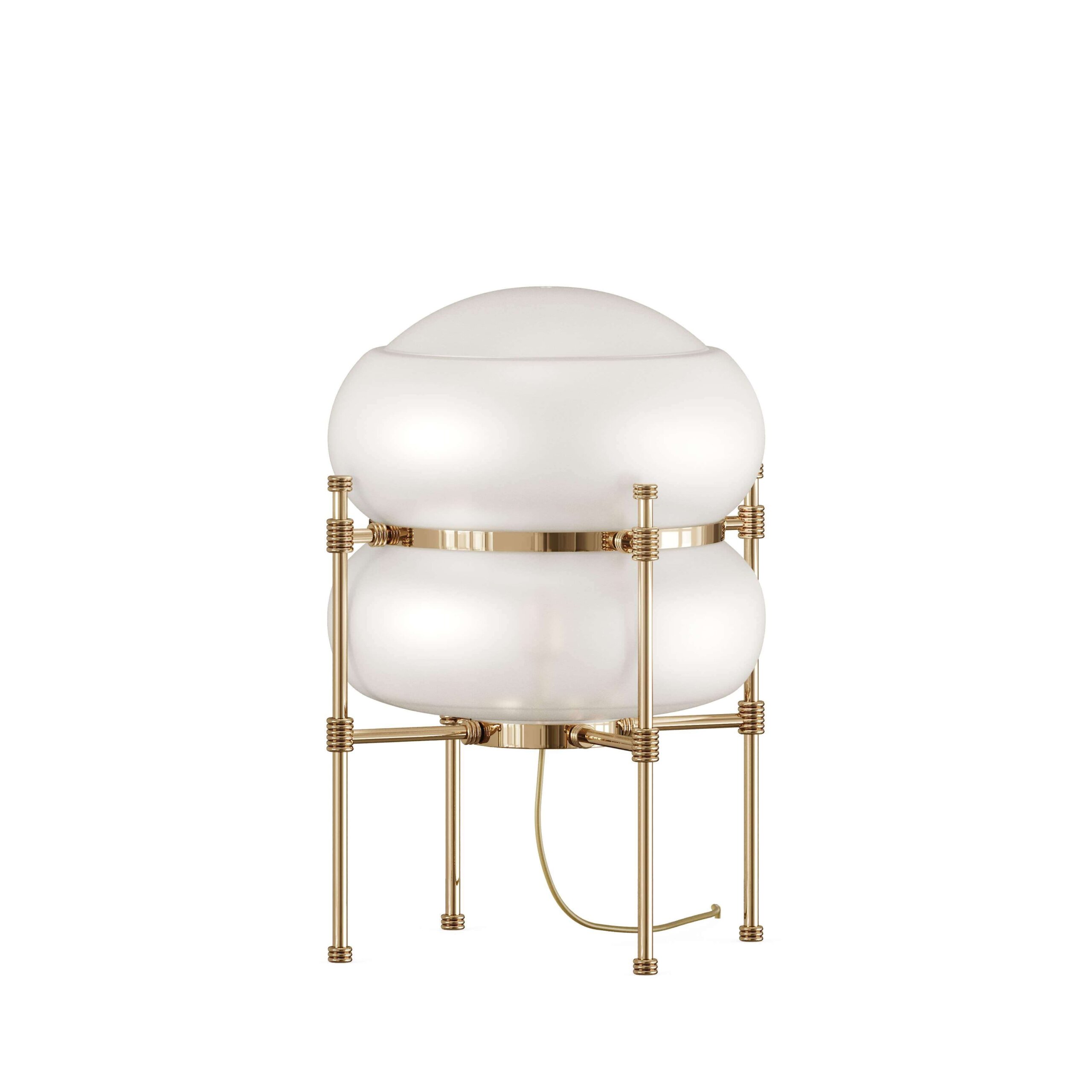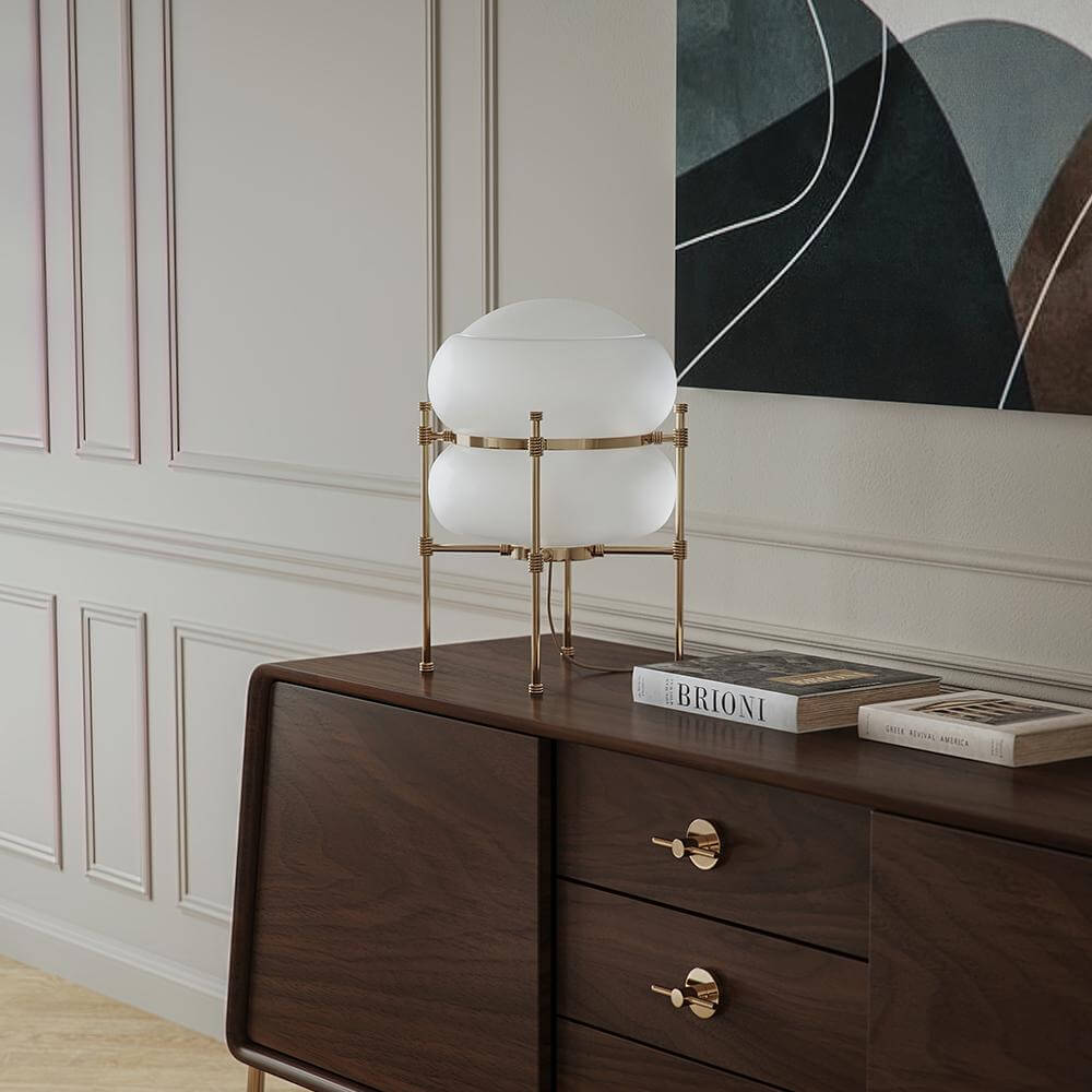 Lampa Adams impresioneaza prin silueta sa neasteptata si captivanta. Designul sofisticat al cadrului din alama placata cu aur ofera un aer sculptural, transformand aceasta piesa intr-un accent decorativ remarcabil. Desi are o prezenta puternica, Adams se integreaza cu gratie in orice spatiu, aducand o combinatie armonioasa de eleganta si indrazneala.