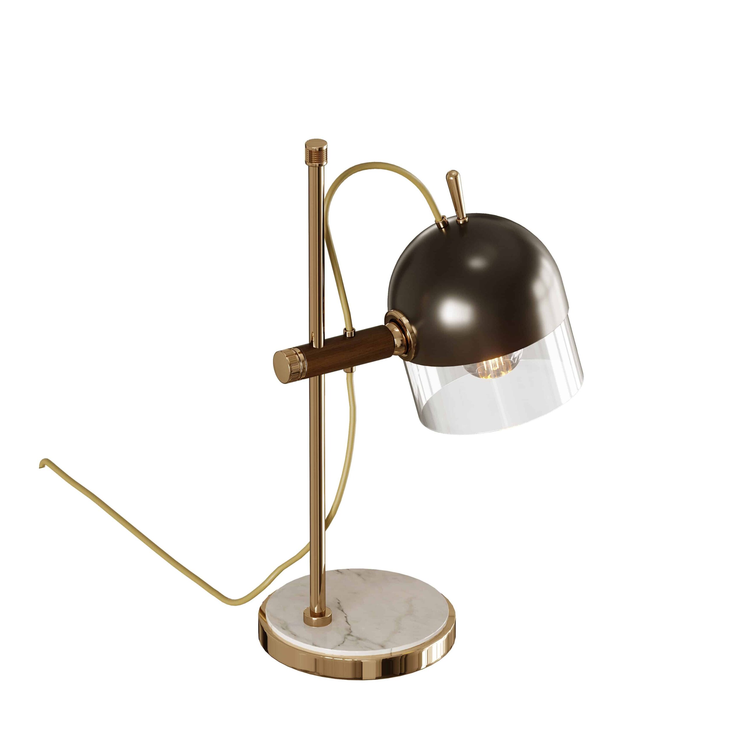 Materiale și finisaje: Alamă placată cu aur, metal vopsit, marmură Carrara și sticlă