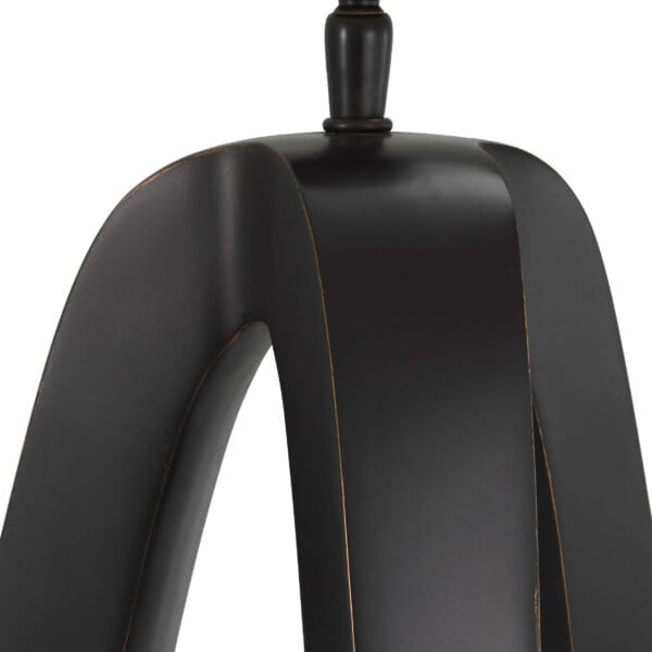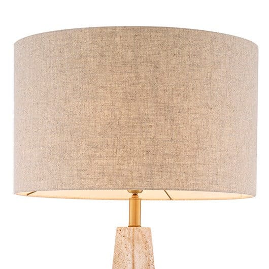 Finisajul cu accente bronz se îmbină subtil cu abajurul din amestec de in, difuzând o lumină caldă și plăcută. Baza din granit negru completează designul cu o notă modernă și stabilitate vizuală.