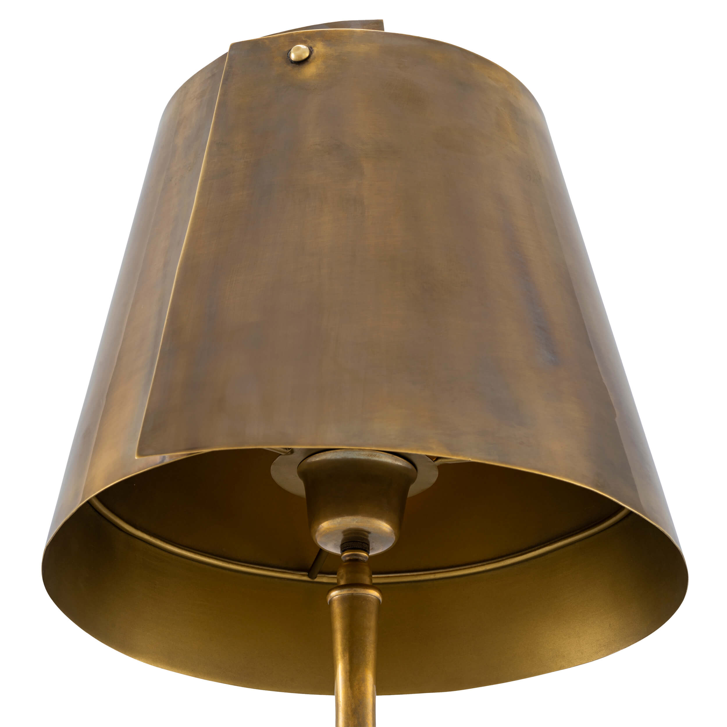 Suportul său sculptural, inspirat de forma bambusului, este finisat în alamă vintage.