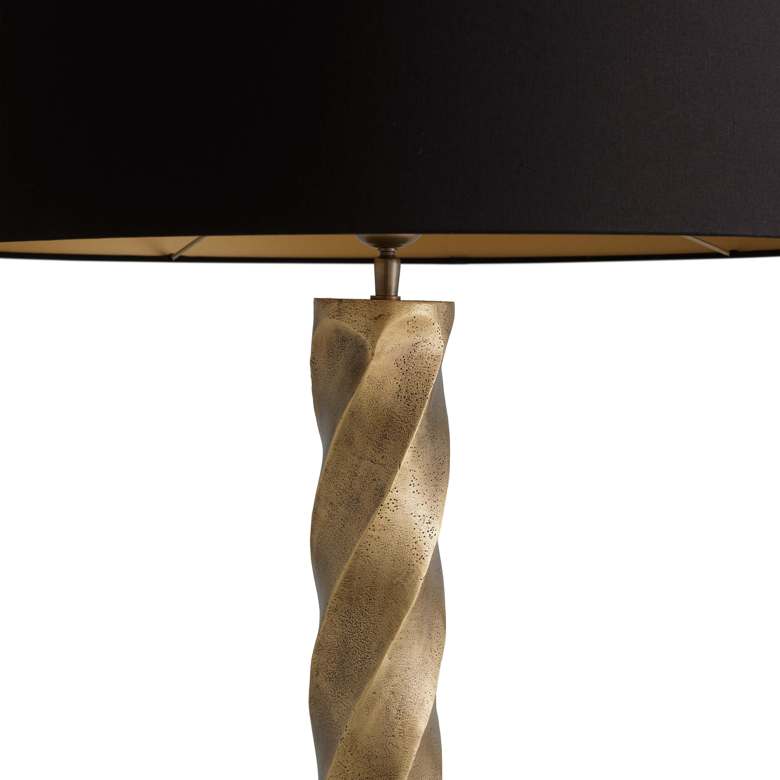 Aceast lampadar are o bază din granit negru: un material unic și luxos, suficient de durabil pentru a rezista testului timpului. Aluminiul turnat și finisajul vintage din alamă sunt combinate cu un abajur minimalist din țesătură neagră, pentru un farmec fără efort.
