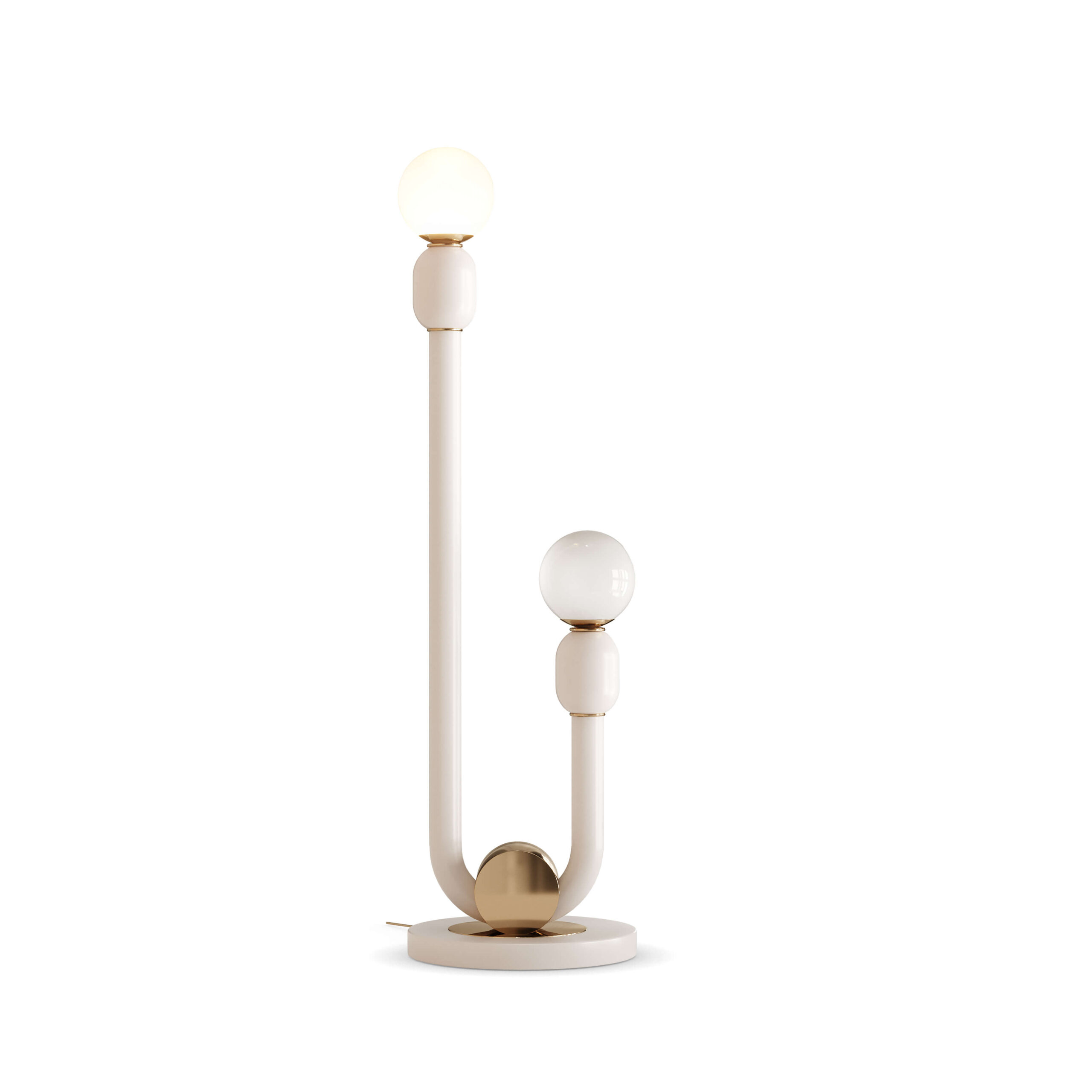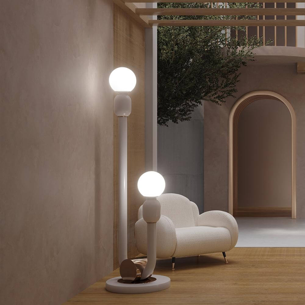 Lampadarul Taylor surprinde esența stilului mid-century prin linii simple și finisaje prețioase. Acest model realizat manual se distinge printr-o structură din metal alb, ușor curbată în zona centrală și susținută de o bază elegantă din alamă placată cu aur. Combinația dintre formă și material conferă piesei un aer sofisticat și echilibrat. Ideal pentru zone de relaxare sau interioare minimaliste, Taylor adaugă rafinament fără a domina spațiul.