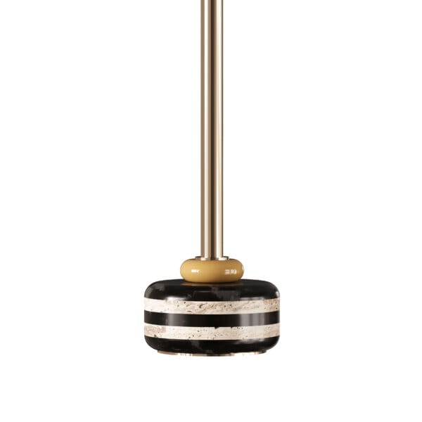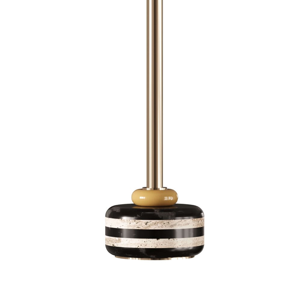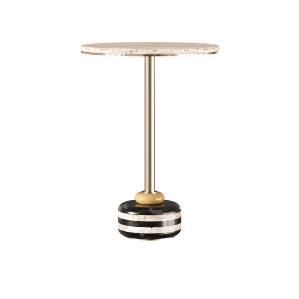 Materiale și finisaje: alamă placată cu aur, marmură Nero Marquina și marmură Travertino
