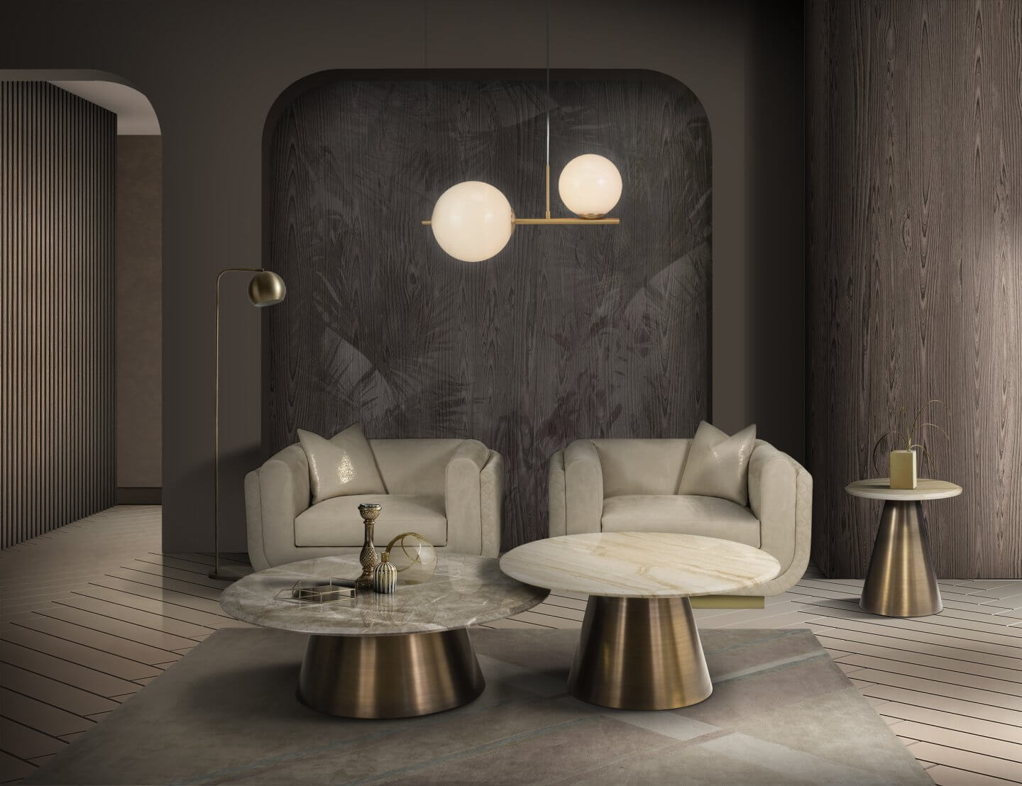 Materiale și finisaje: marmură Spyder Grey și Oxybronze