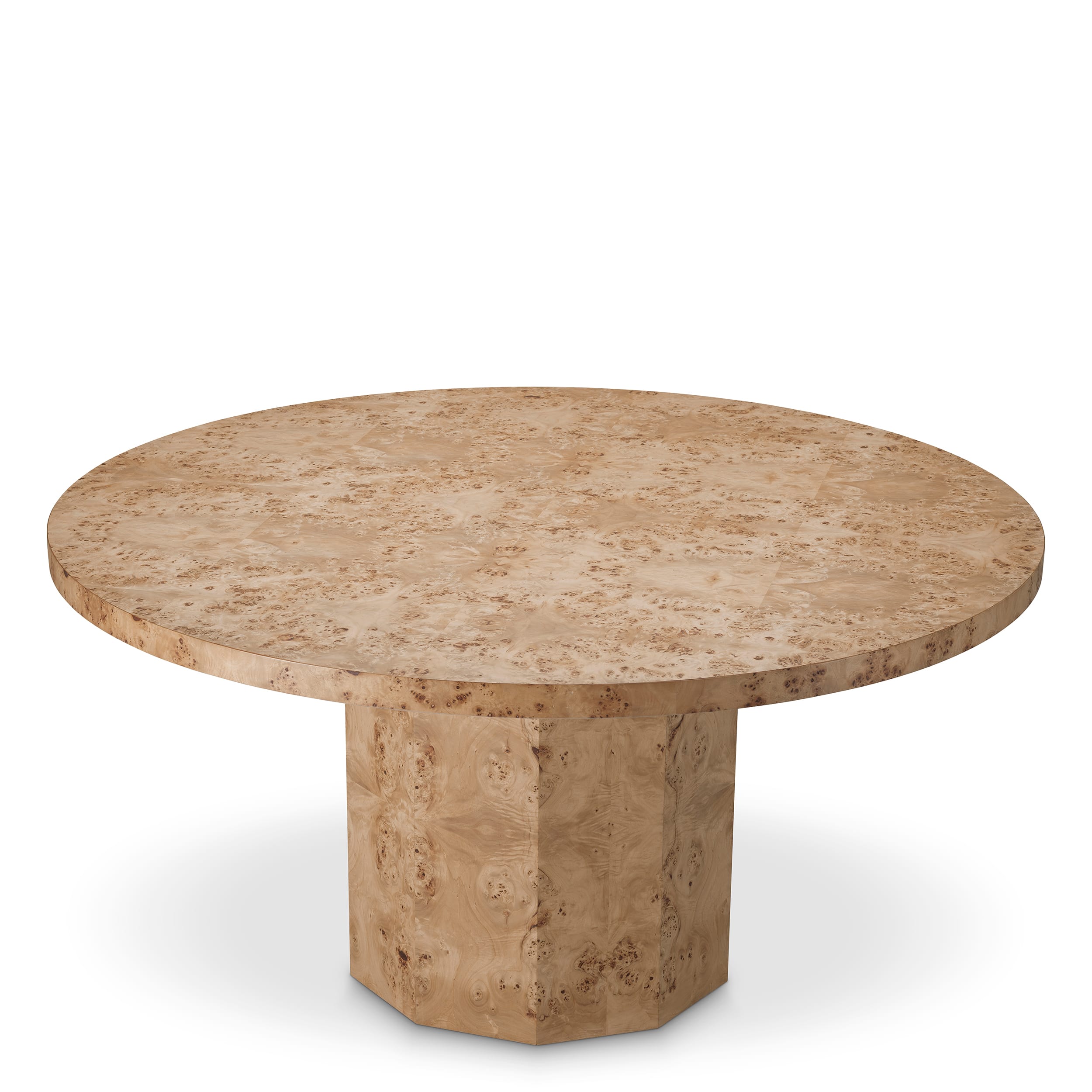 Realizat din rădăcina de lemn rară a plopului negru european, acest lemn aparte este apreciat pentru fibra complexă și eleganța sa naturală. Cu tonuri calde și un finisaj neted, masa oferă o prezență atemporală, completând interiorul cu un lux discret.