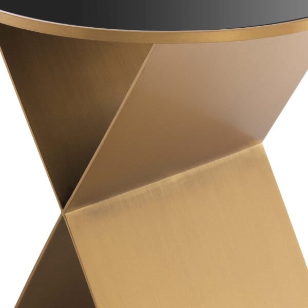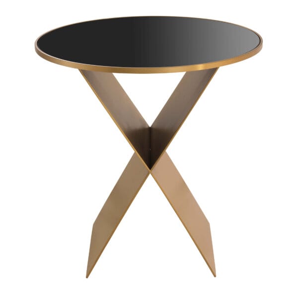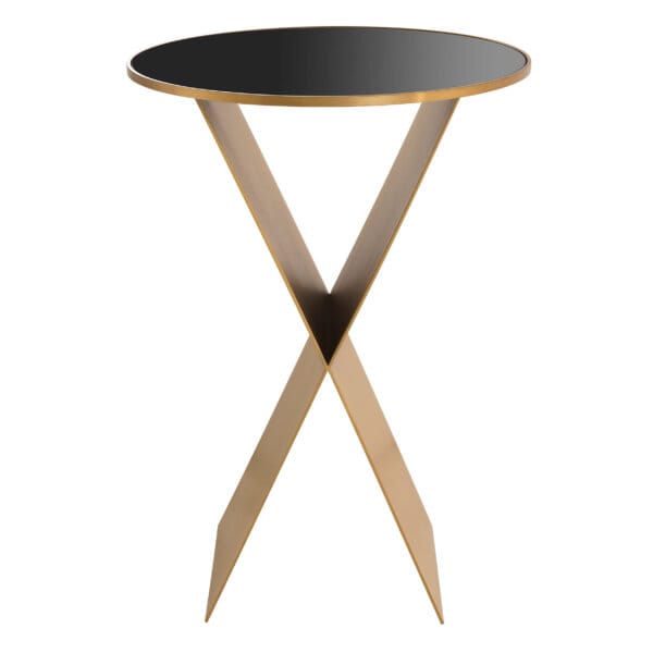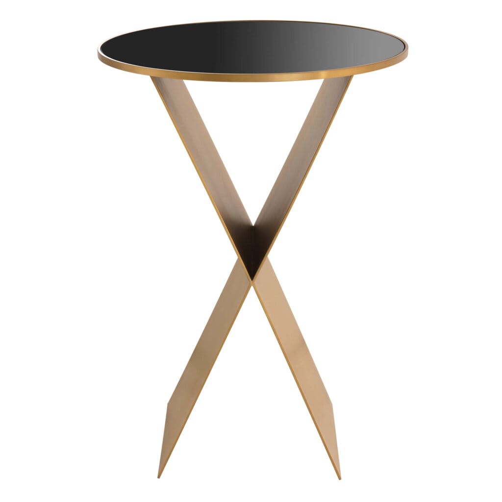 Blatul rotund din sticlă neagră și finisajul din alamă periată se îmbină armonios cu baza distinctivă în formă de „X”, creând o piesă de accent unică. Frumoasă și practică, masa Fitch este alegerea ideală pentru a completa cu stil livingul sau dormitorul.