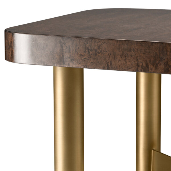 Furnirul lucios de arțar reflectă lumina cu o strălucire hipnotizantă, în timp ce finisajul din alamă periată ridică masa la niveluri de sofisticare neegalate. Permite măsuței Oracle să fie un testament al gustului tău impecabil în spațiul de locuit.