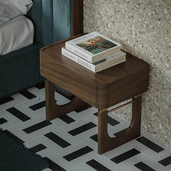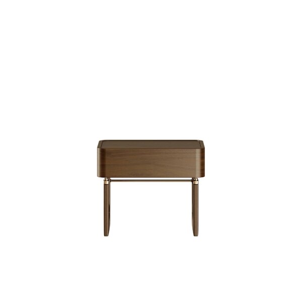 Noptiera Williams pune în valoare contrastul rafinat dintre lemnul de nuc și detaliile din alamă lustruită, într-un design echilibrat, inspirat din estetica anilor ’50–’60. Liniile sale simple și proporțiile bine gândite accentuează funcționalitatea, transformând piesa într-o alegere naturală pentru un dormitor contemporan cu influențe clasice.