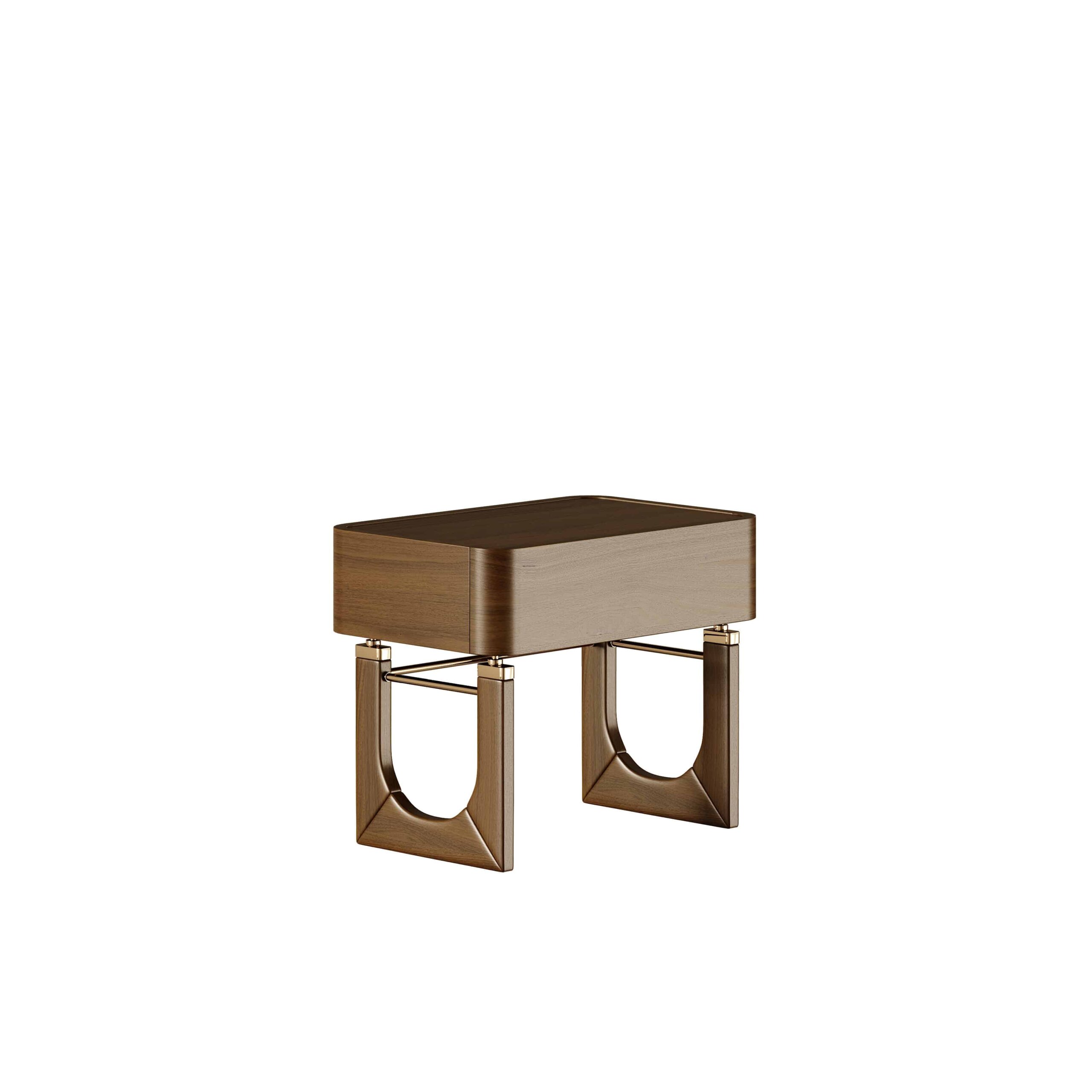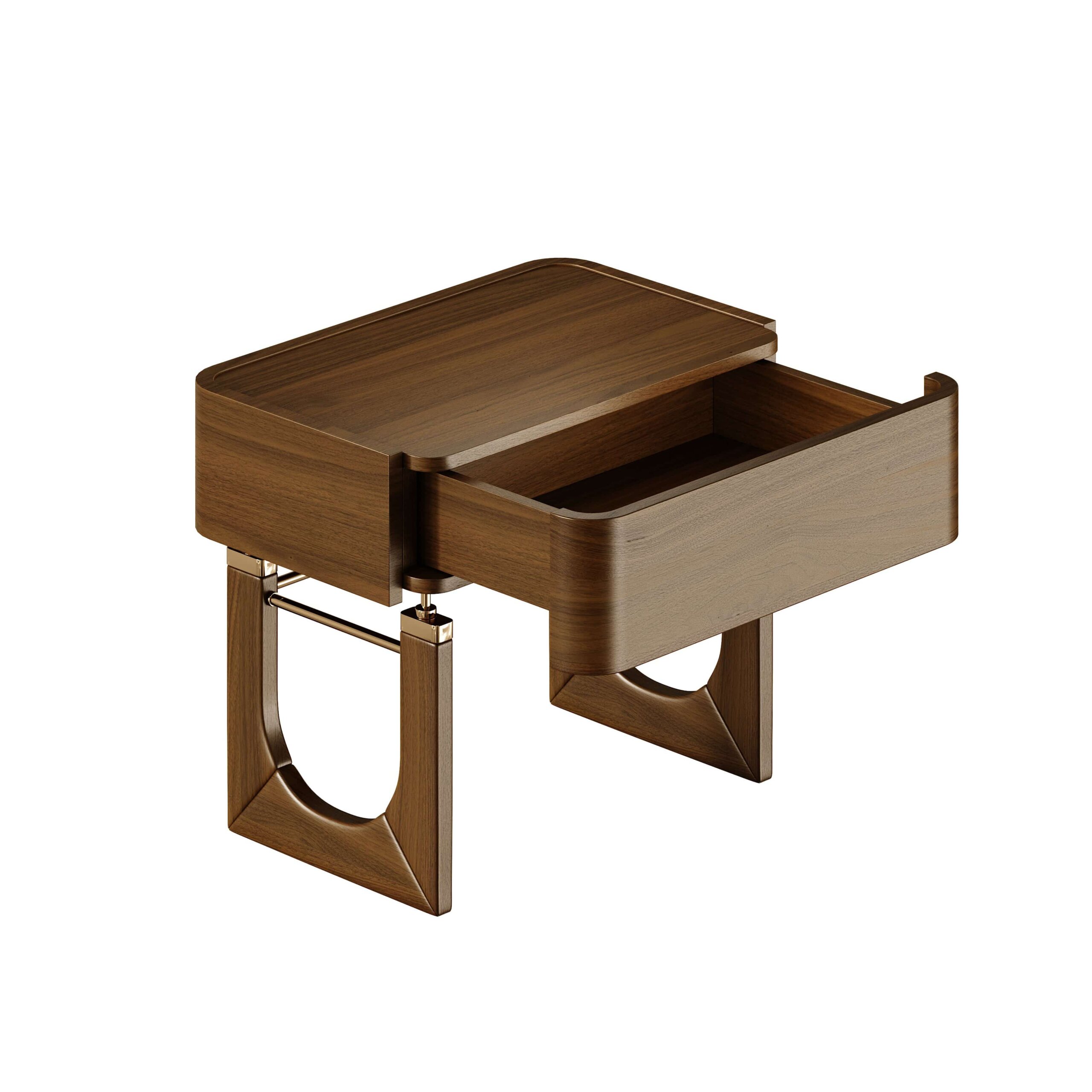 Materiale și finisaje: lemn de nuc mat și alamă lustruită