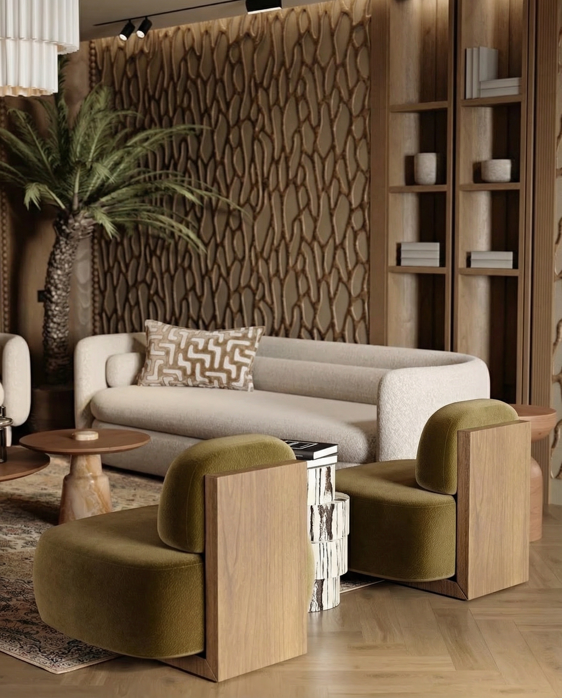 Perna Gustèr aduce în interior o estetică contemporană, definită de un model geometric cu relief subtil și de o paletă neutră, ușor de integrat în amenajări elegante și echilibrate. Textura creează un joc discret de lumină și volum, adăugând profunzime și expresivitate spațiului.