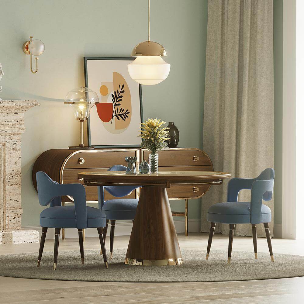 Nu e de mirare că zonele de dining pot deveni o poartă către farmecul epocii mid-century, mai ales cu prezența inconfundabilă a scaunului Chaplin. Forma distinctivă a spătarului atrage imediat atenția, aducând un aer jucăuș și elegant oricărui interior. Designul său primitor, cu linii curbate și un șezut generos, creează echilibrul ideal între estetică și confort.