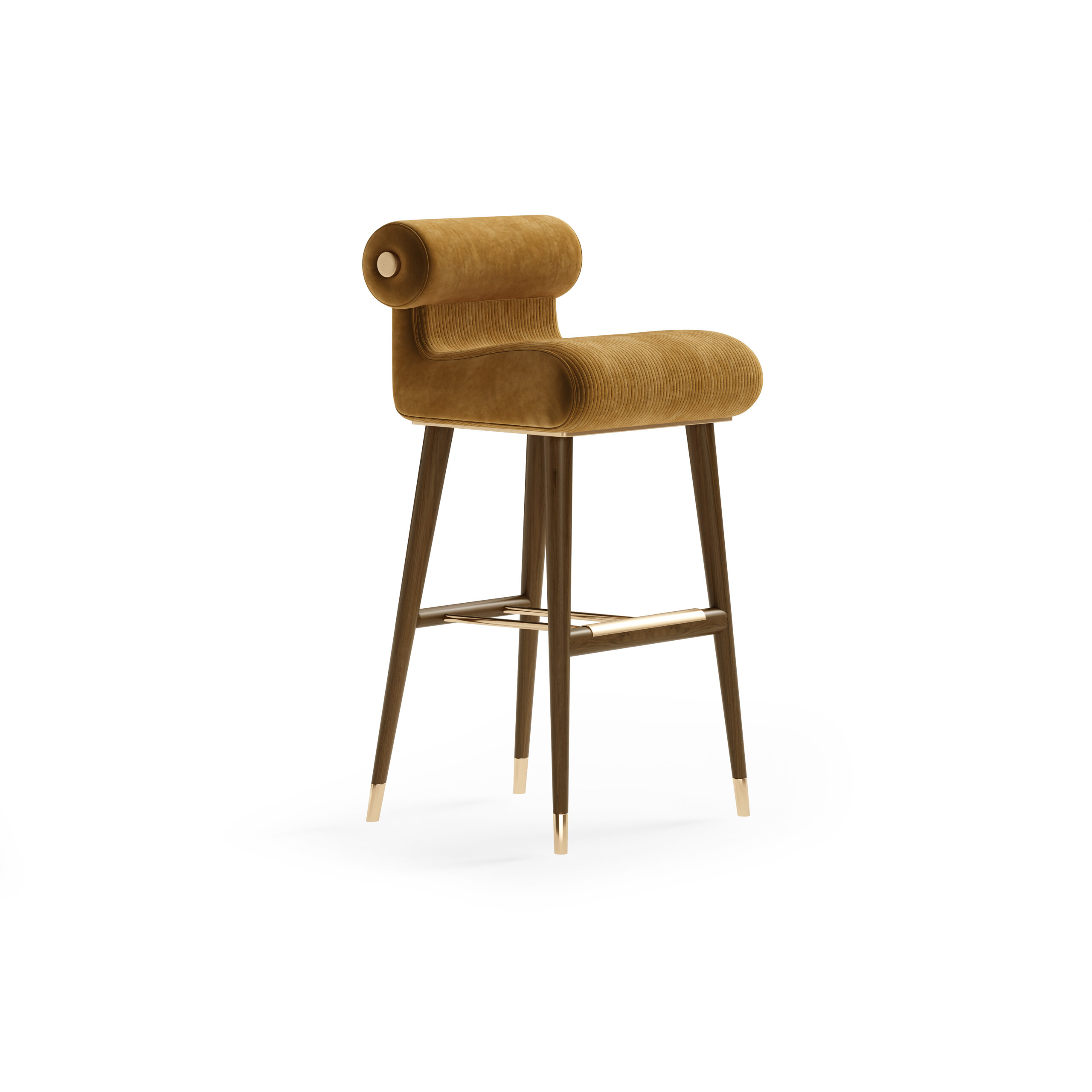 Scaunul de bar Tennessee se remarcă prin forma sa sculpturală. Conceput pentru a crea impresia unei piese continue, șezutul și spătarul se îmbină într-o siluetă fluidă și neîntreruptă, care îi definește estetica modernă. În partea superioară, spătarul cilindric tapițat oferă confort și o notă de delicatețe vizuală, în timp ce șezutul ridicat asigură suport ergonomic pentru momente îndelungate petrecute la bar sau la blat.