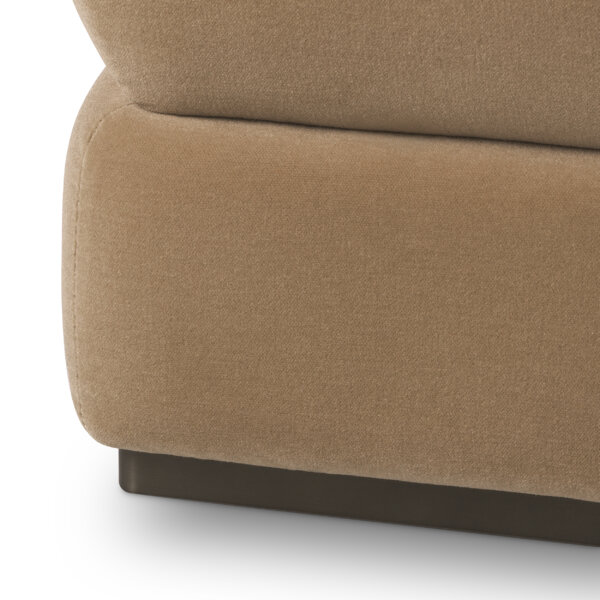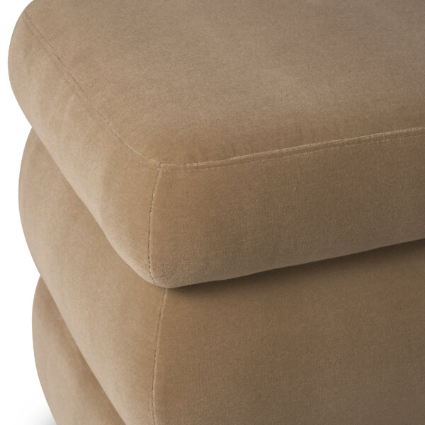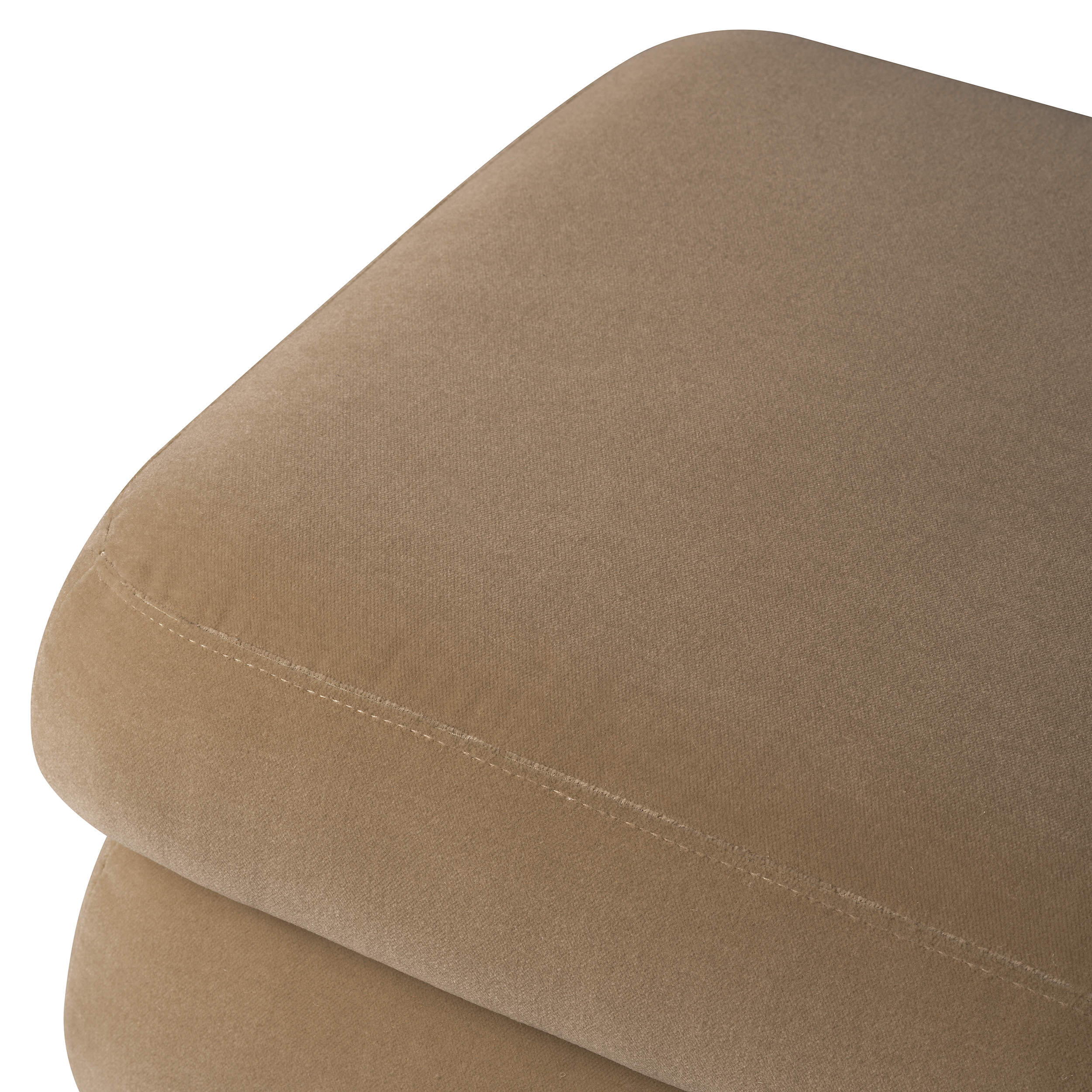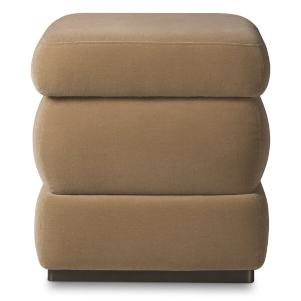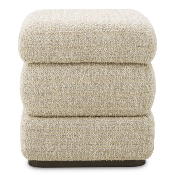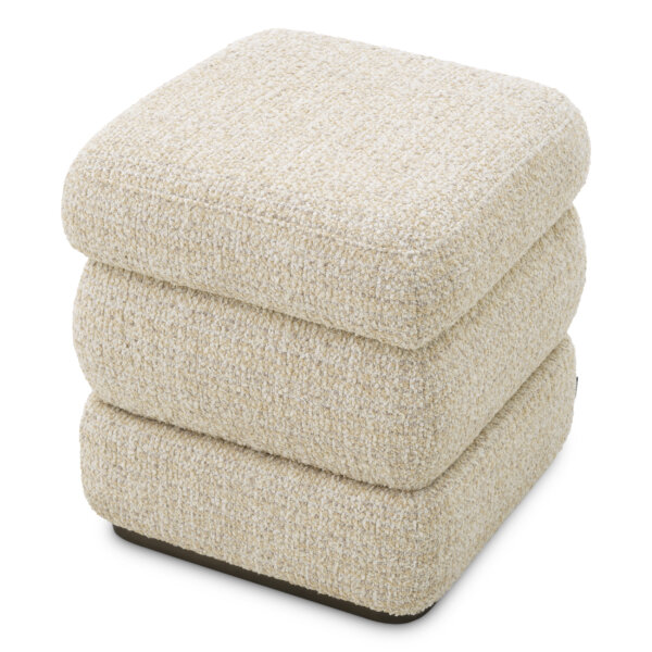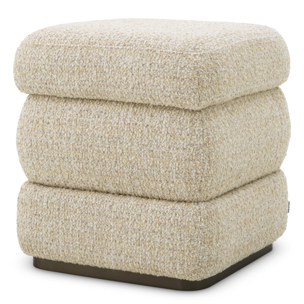 Tapițat în catifea moale Winslow chenille beige și completat de o bază cu finisaj bronz, taburetul Fifth îmbină măiestria clasică cu versatilitatea contemporană. Fie că este utilizat ca loc de ședere, măsuță laterală sau element decorativ cu valoare sculpturală, aduce în interior o notă discretă de lux. Disponibil și în varianta din lână Morris Merino, pentru o textură mai bogată și nuanțe cu profunzime.