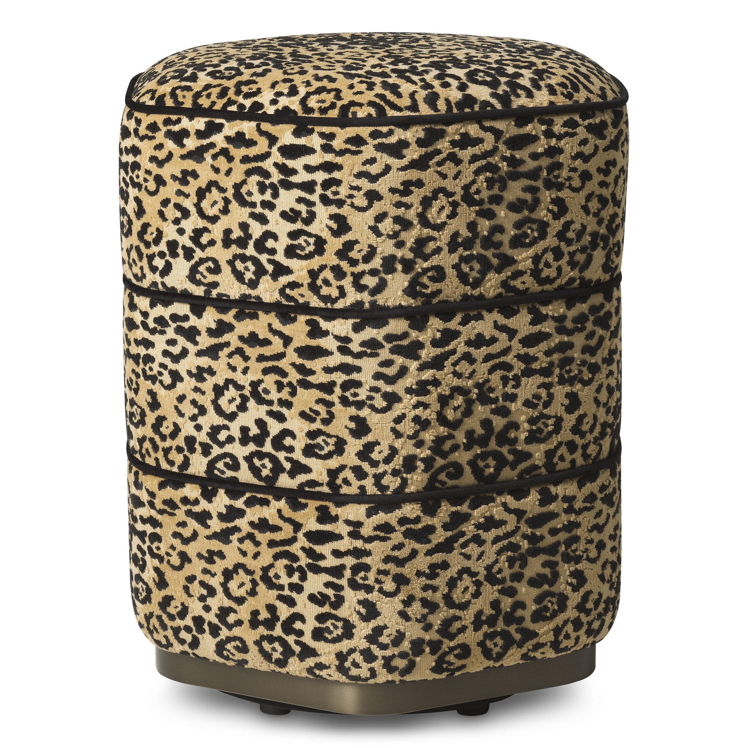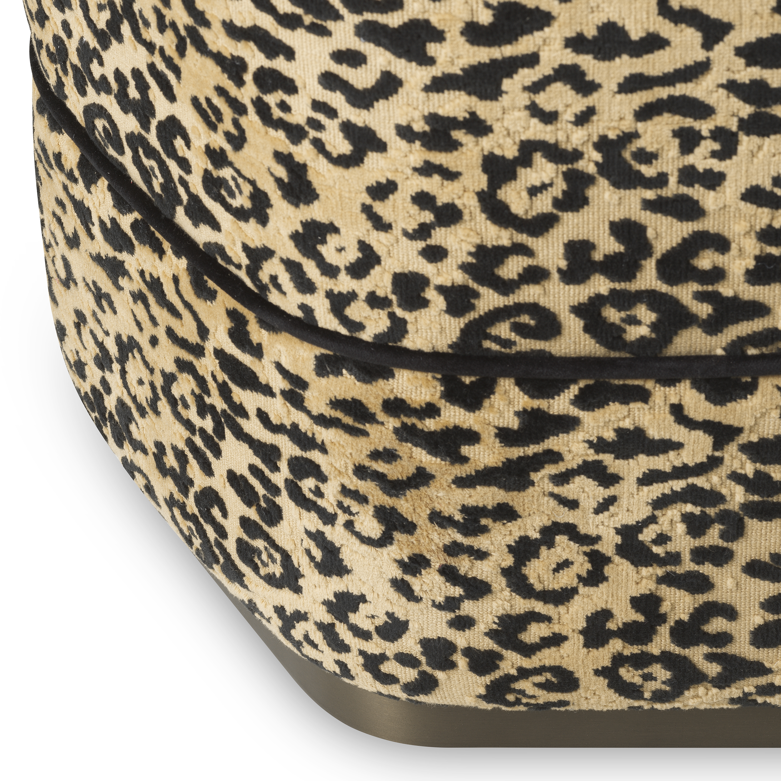 Tapițat integral în țesătura Bernard leopard și susținut de o bază pivotantă cu finisaj bronz, acest taburet versatil îmbină confortul cu accente îndrăznețe. Utilizat ca loc suplimentar de ședere sau ca piesă statement, silueta sa sculpturală și textura bogată îl transformă într-un element de impact, potrivit atât interioarelor clasice, cât și celor contemporane.