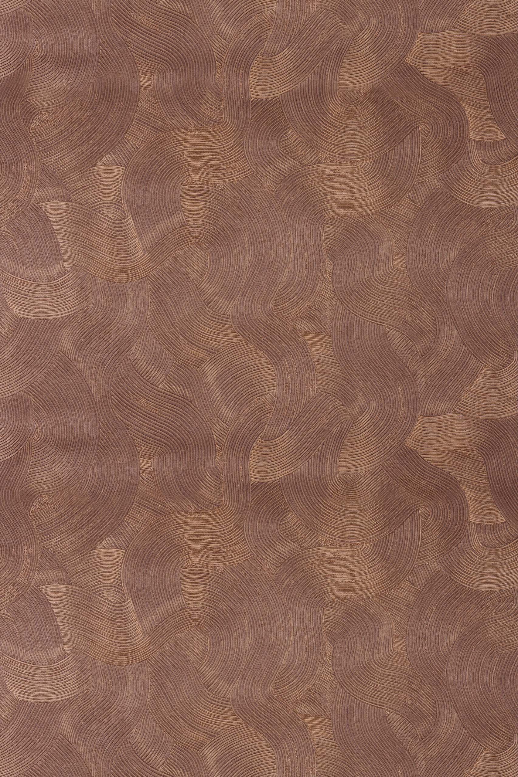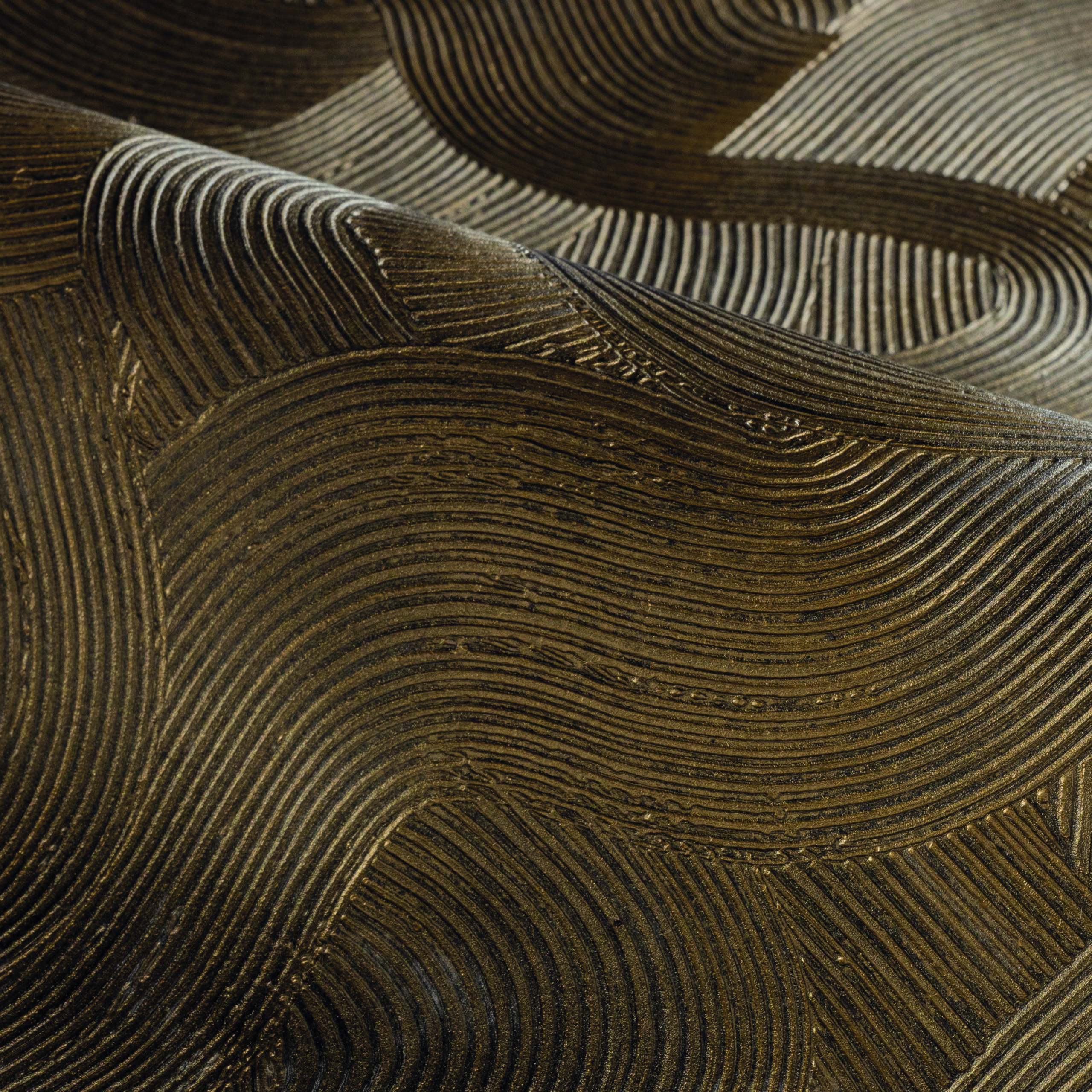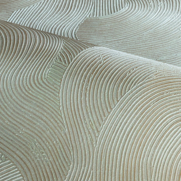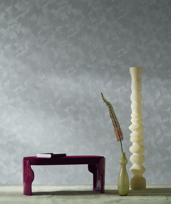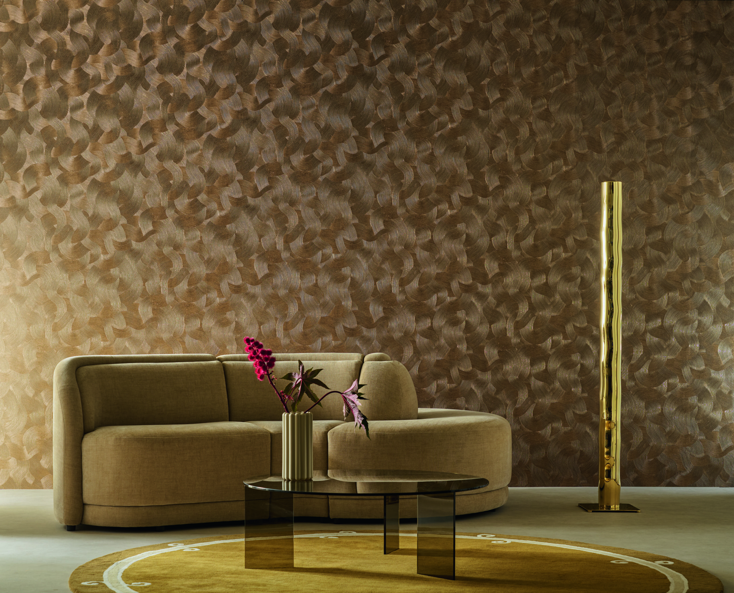 Textura sa creează o suprafață vibrantă, animată de forme curbe care captează lumina. Neregularitățile îi oferă profunzime vizuală și tactilă, evidențiată prin accente metalice. Designul este realizat prin aplicarea de cerneluri aurii, argintii sau sidefate peste o bază simplă, colorată.
