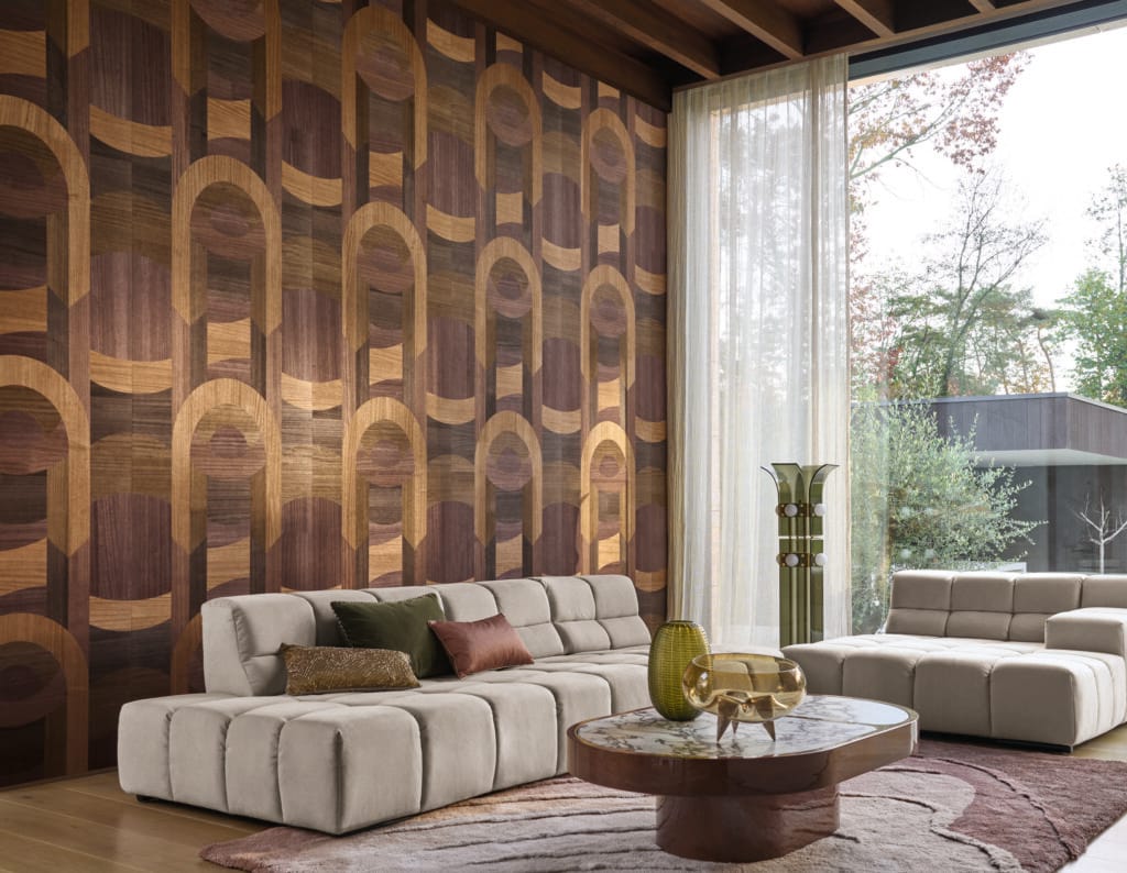 Arhitectura Art Deco a acestui transatlantic și-a pus amprenta la nivel mondial, depășind mările și granițele. Această influență se regăsește în geometria modelului „Traversée” și în marchetăria sa atent realizată pe suport nețesut. Este disponibil în trei variante, în combinații contrastante de culori: tonuri de stejar și ivoar, nuanțe de nuc, precum și o combinație de stejar, ivoar și carbon.